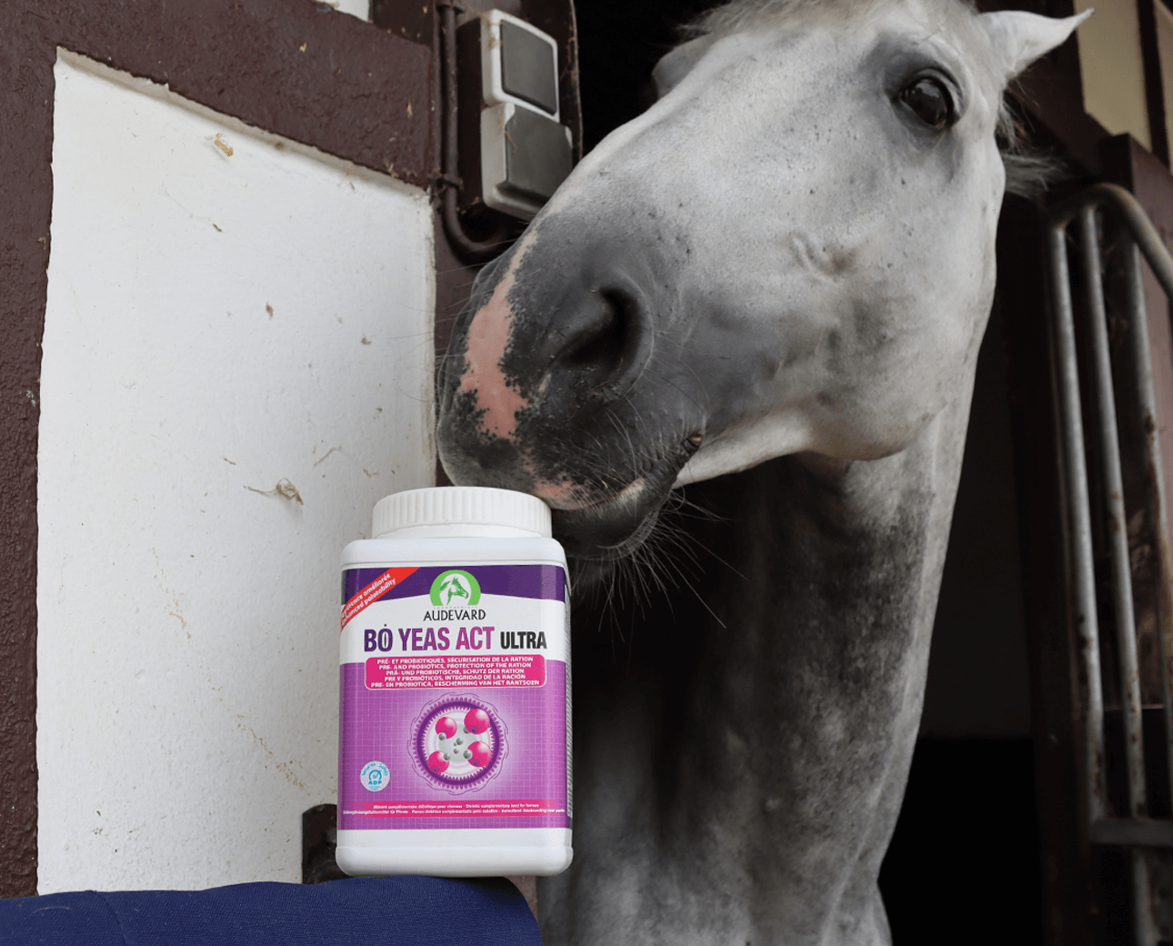 Bo Yeas Act Ultra d’Audevard, source de prébiotiques et de probiotiques pour chevaux permet de mieux valoriser la ration alimentaire.