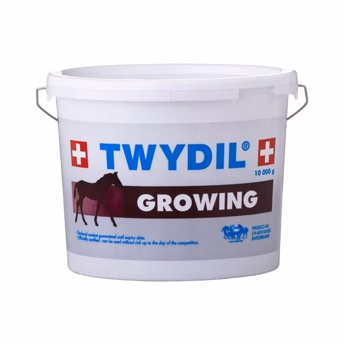 | Précautions d'emploi | Chaque lot de Twydil Growing est officiellement certifié par le LCH (après contrôles sur produit fini, urine et sang) pouvant être utilisé sans risque. Il est de la responsabilité de l’utilisateur de s’assurer que le produit satisfait à la réglementation locale. Formulé pour les équidés – Bien refermer après usage – A conserver dans son emballage d'origine à l'abri de la chaleur et de l'humidité – Tenir hors de portée des enfants. |