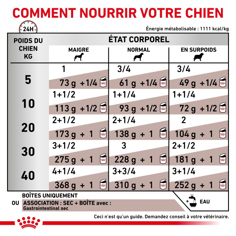 Pour la santé de votre chien, il est recommandé de consulter votre vétérinaire et de respecter scrupuleusement ses recommandations nutritionnelles.