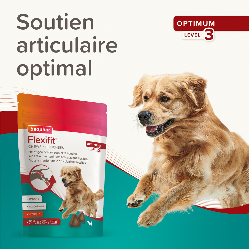 Les bouchées Beaphar Flexifit sont recommandées pour les chiens ayant besoin d’un soutien articulaire supplémentaire.