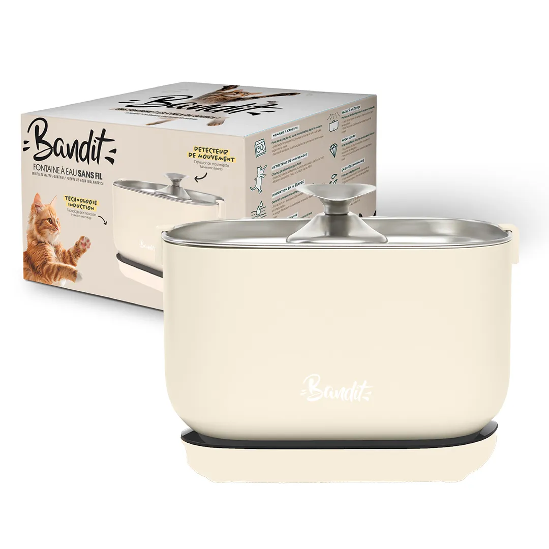 La fontaine à eau BANDIT est un dispositif conçu pour encourager l’hydratation des chats et des petits chiens.