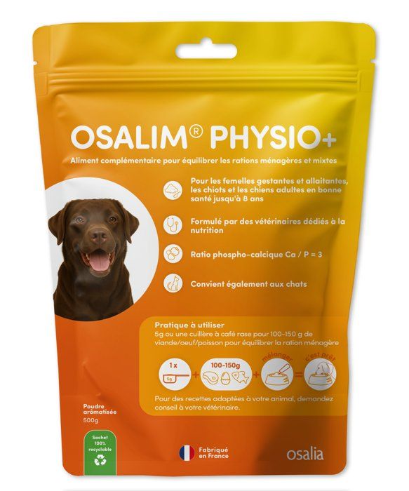 Osalim Physio+ est un complément alimentaire formulé pour équilibrer les rations ménagères ou mixtes des chiens et chats en bonne santé.