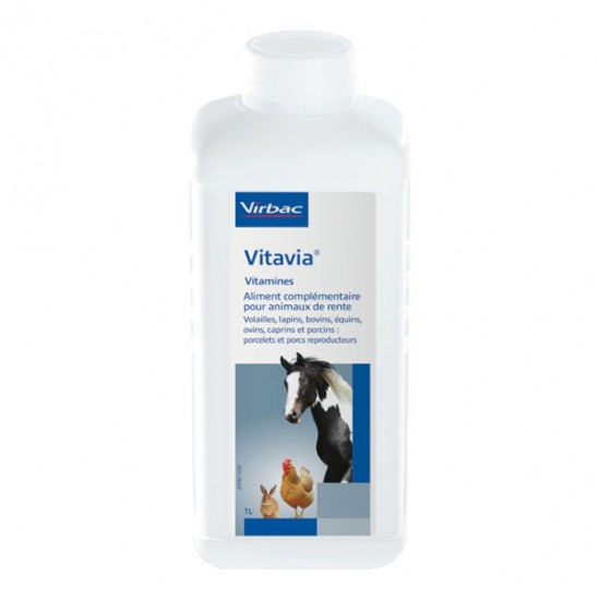 | Mode d'emploi | Voie orale. Bovins, équins : Ovins, caprins : Porcins : porcelets : 0, 5 mL 1mL de Vitavia apporte : 1005 UI de vitamine A, 204 UI de vitamine D3 et 1, 02 mg de BHT. |